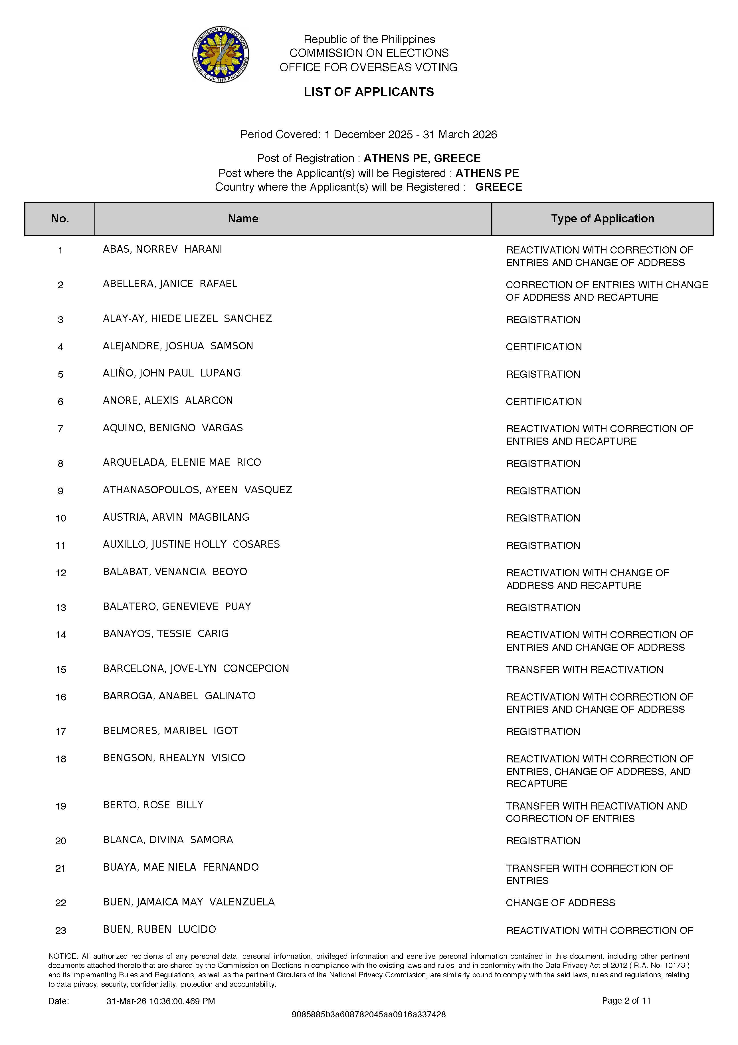 Please be notified that the Resident Election Board (RERB) of the Embassy of the Philippines in Athens, Greece will convene at the Philippine Embassy located at 26 Antheon St., Paleo Psychico, 154 52...
